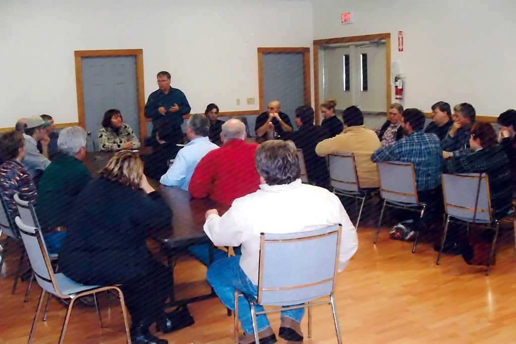 Yet another group of local farmers greeted Mr. Bonnett at the Inwood Fire Hall. Many of the farmers in attendance were grain and oilseed farmers and the discussion highlighted once again the farm income crisis.